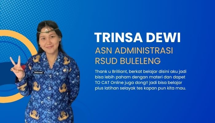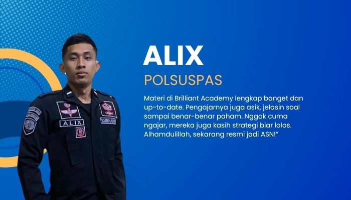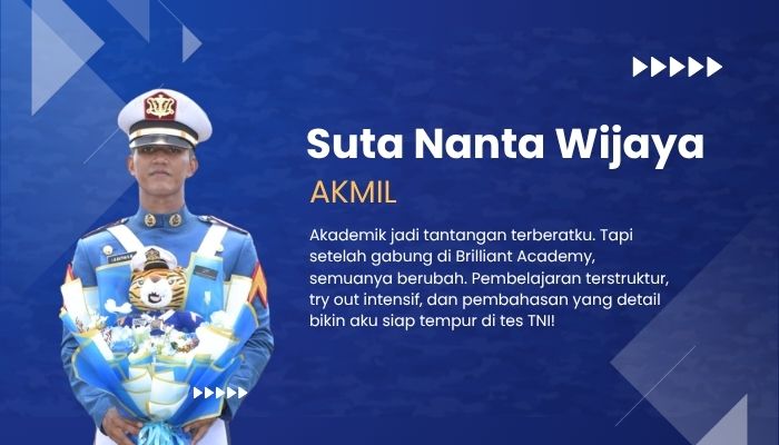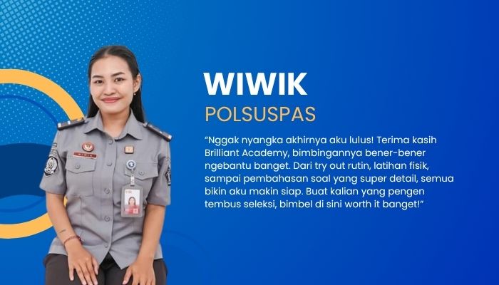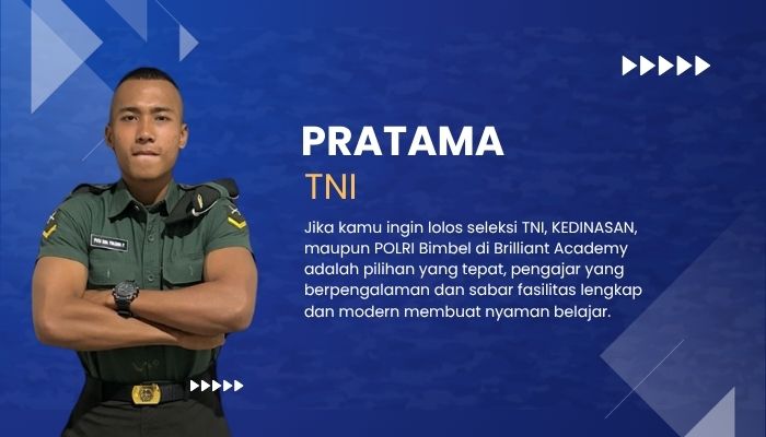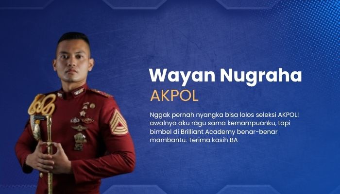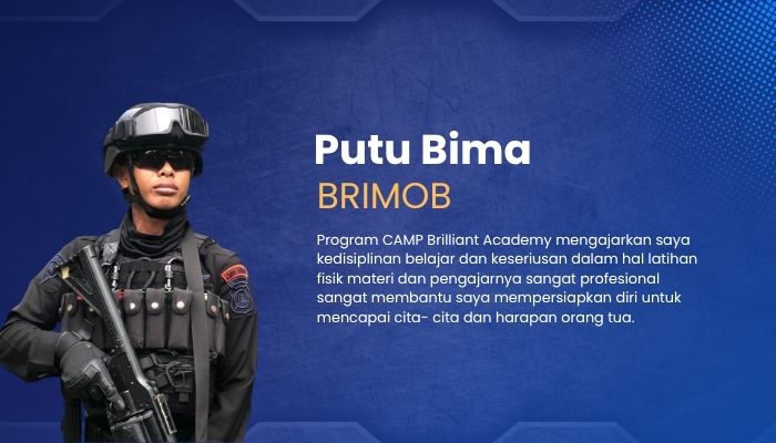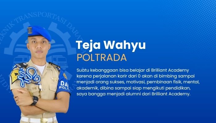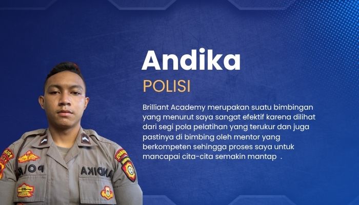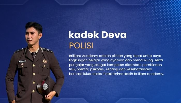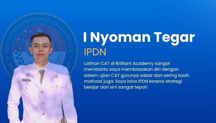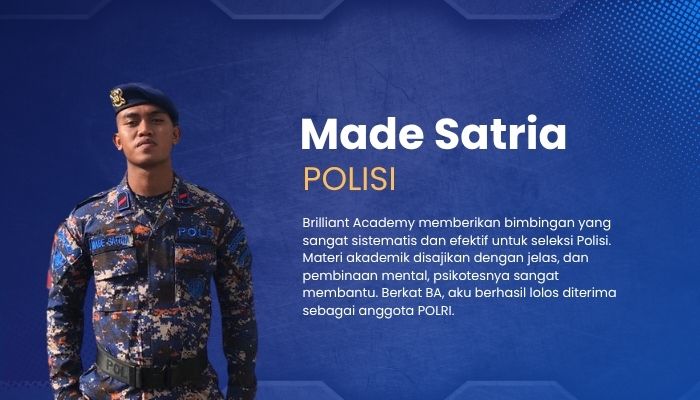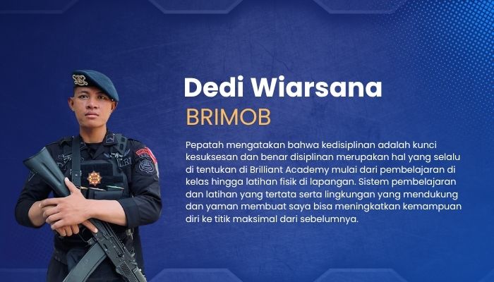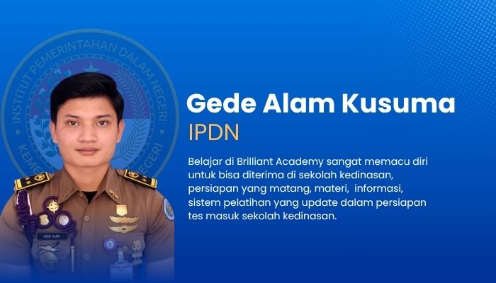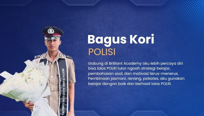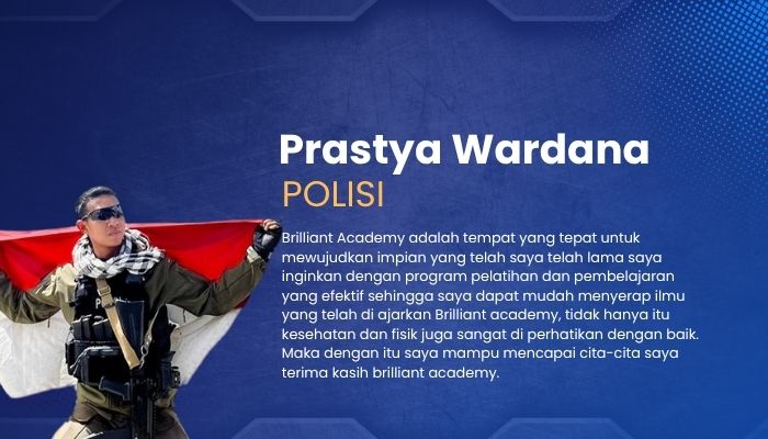 Untuk bisa lolos seleksi yang ketat, persiapan matang adalah kunci. Bimbel Brilliant Academy siap membimbingmu dengan metode belajar efektif, materi lengkap, dan strategi lolos ujian masuk. Bersama Brilliant Academy, wujudkan impianmu menjadi Abdi Negara yang profesional dan berintegritas.
